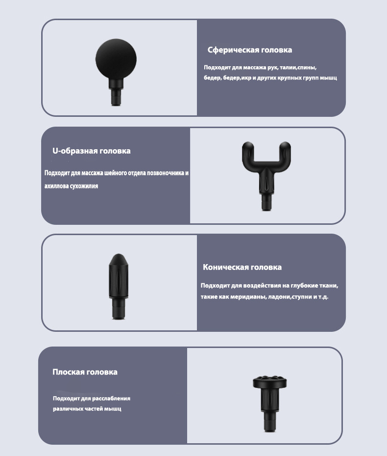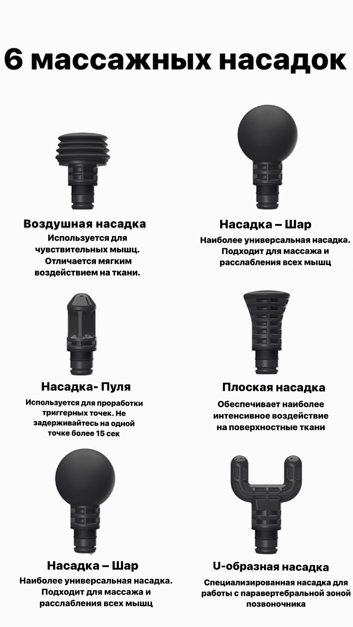 Перкуссионный массажер ударный вибрационный пистолет для тела от боли в мышцах, 6 скоростей, 4 насадок