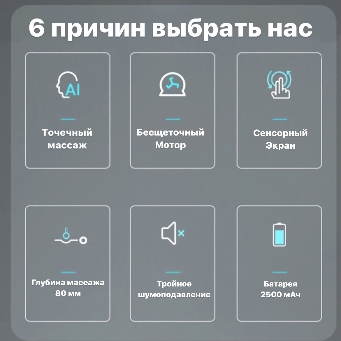 Перкуссионный массажер для шеи и плеч / Массажер пистолет / 8 насадок / Ударный / Массажный / Электрический / для тела, шеи, ног