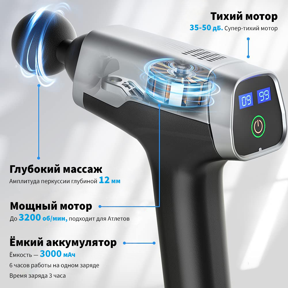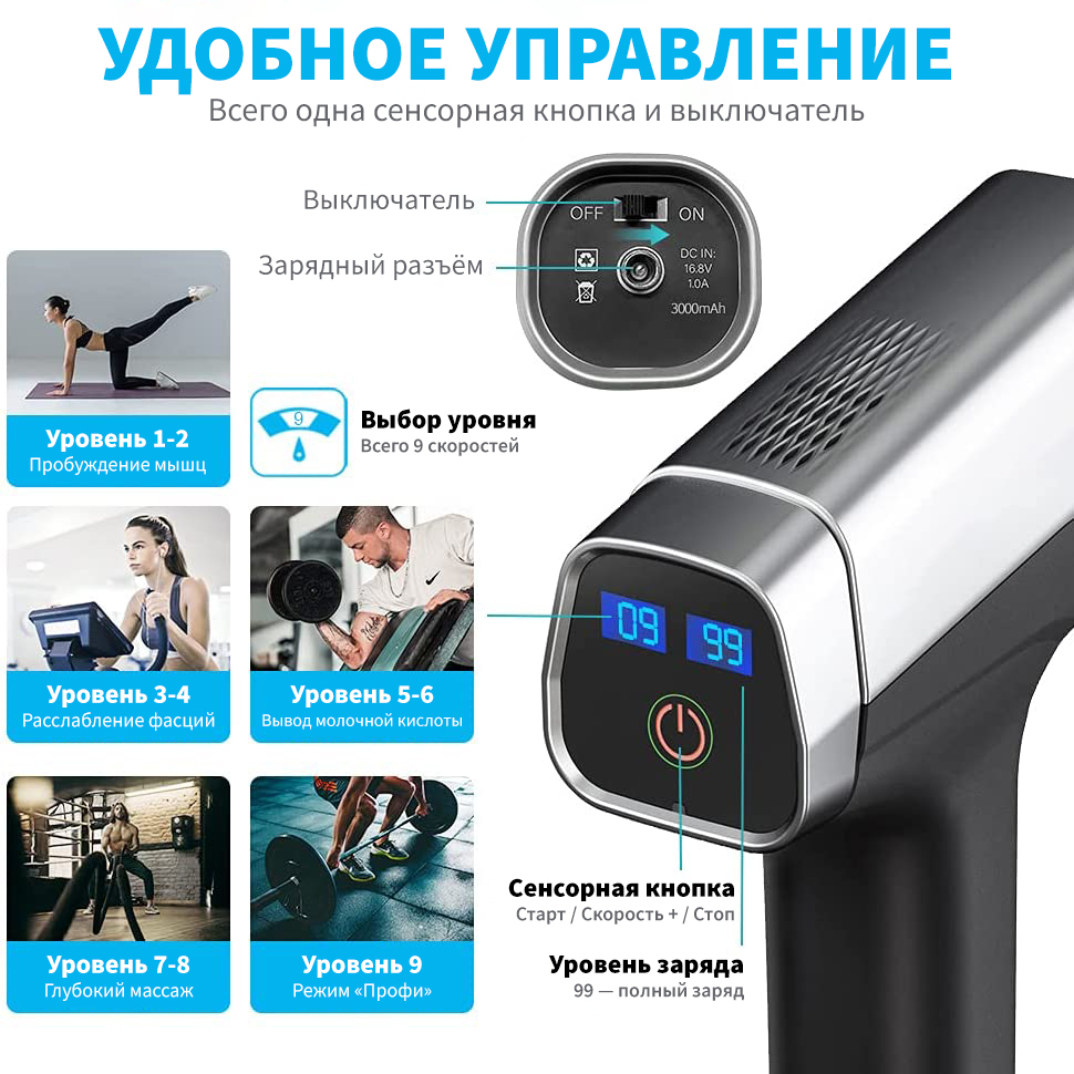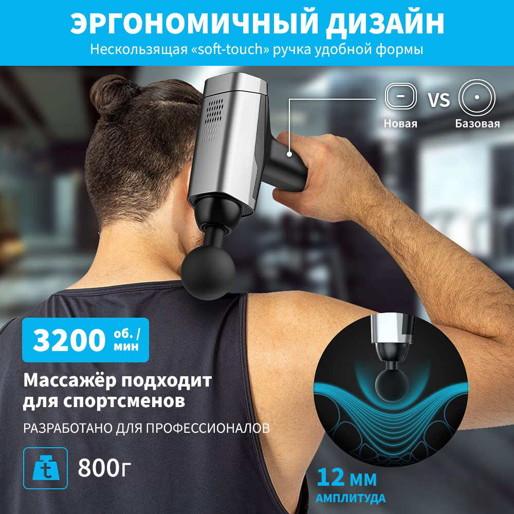 Перкуссионный массажер, массажный пистолет, массажер для тела: для ног, для шеи и плеч