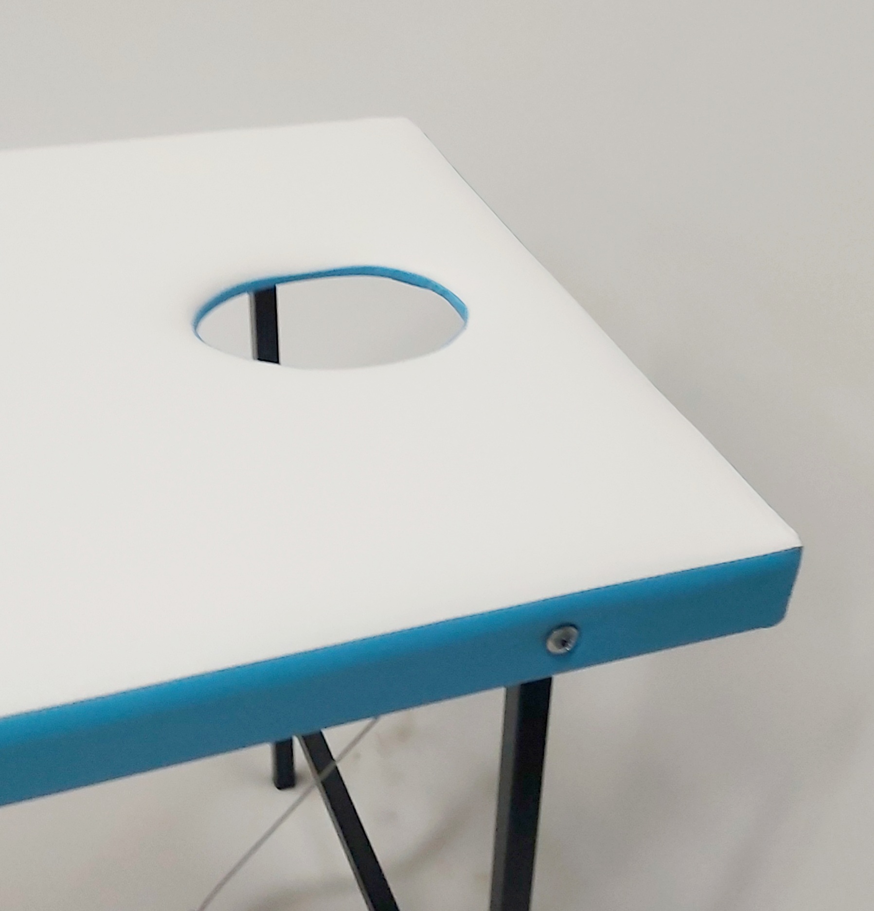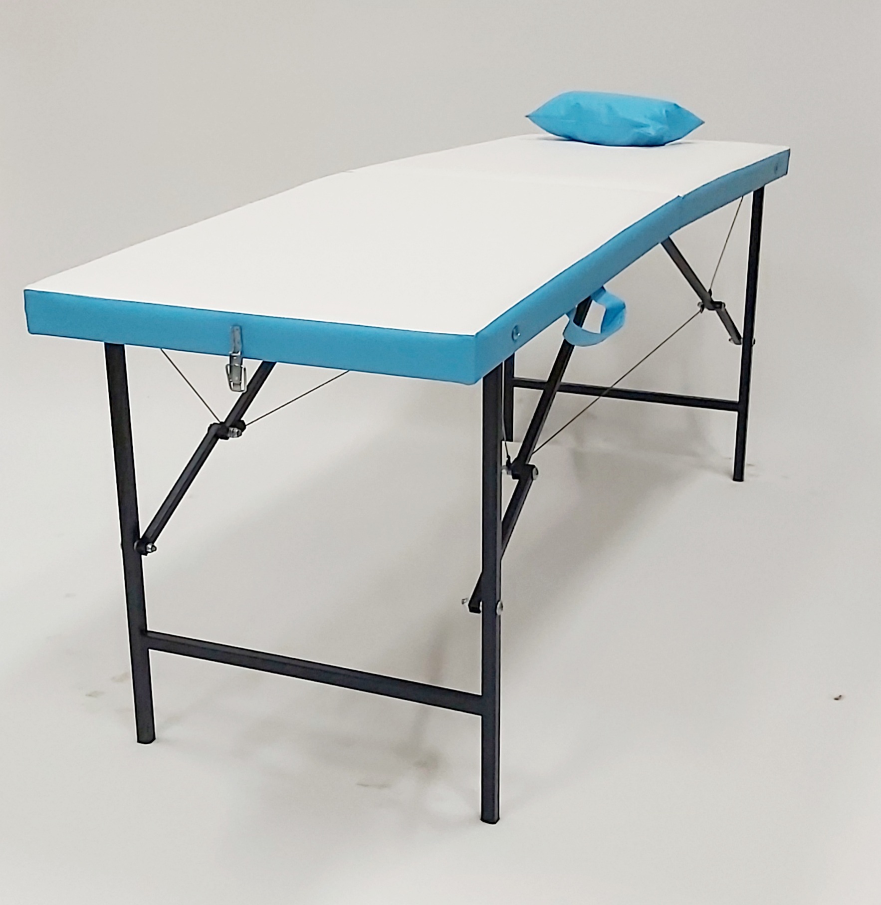 Кушетка складная косметологическая с вырезом для лица 180х60 ВЛ бело бирюзовый