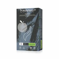 Перчатки смотровые нитриловые текстурированные на пальцах Benovy S, черные, 50 пар