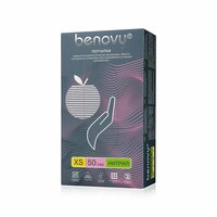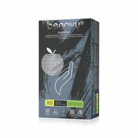 Перчатки смотровые нитриловые текстурированные на пальцах Benovy XS, черные, 50 пар