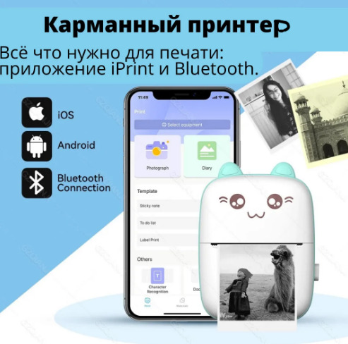 Мини-принтер термо Printer Mini A6 203 DPI,57*30MM,6 Rolls Thermal Paper