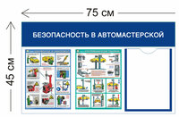 Стенд Безопасность в автомастерской 45х75см (1 карман А4 + 2 плаката)