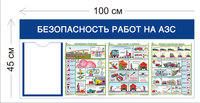 Стенд Безопасность работ на АЗС 1 карман 45х100см (1 карман А4 + 3 плаката)