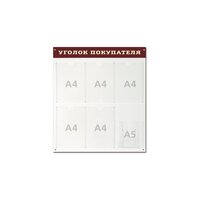 Доска-стенд "Уголок покупателя", 70х80 см, 5 плоских карманов А4 + 1 объемный карман А5