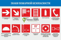 Стенд "Знаки пожарной безопасности" без рамки (полноцветная печать, размер: 1200х600 мм)