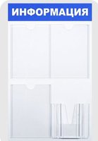 Информационный стенд с карманами А4 Россия "Информация", 50х75, 4 кармана, синий