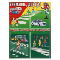 Стенд "Внимание, дорога!" А2, 2 кармана А4 и 2 кармана А5