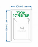 Уголок потребителя - размер 300х450 мм., карманы формат А4, объемный 1 шт (Белый фон, серые надписи - Рамка белая пластиковая )