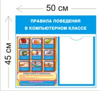 Стенд Правила поведения в компьютерном классе 45х50см (1 карман А4 + 1 плакат)