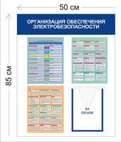 Стенд Организация обеспечения электробезопасности 85х50см (1 объ. карман А4 + 3 плаката)