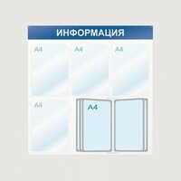 Стенд информационный Информация, 4 отд. и 10 демопан., 750х750, синий, наст