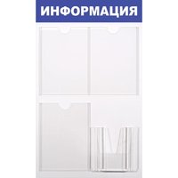 Информационный стенд настенный Attache Информация А4/А5 пластиковый белый/синий (4 отделения)
