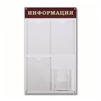 Доска-стенд "Информация", 48х80 см, 3 плоских кармана А4 + объемный карман А5, 915
