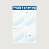 Информационный стенд настенный Attache Уголок покупателя А4 пластиковый белый/синий, 4 отделения