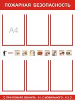 Стенд Пожарная безопасность на 6 карманов А4 100 х 75 см Пластиковый профиль