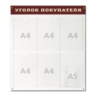 Доска-стенд "Уголок покупателя", 70х80 см, 5 плоских карманов А4 + 1 объемный карман А5
