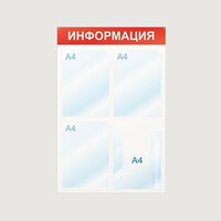 Стенд информационный Информация, 4 отд., 500х750, красный, настенный