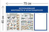 Стенд Использование микрометра и штангенциркуля 45х75см (1 карман А4 + 2 плаката)