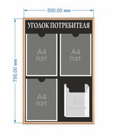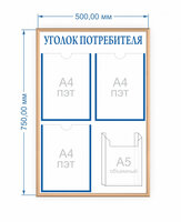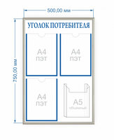 Уголок потребителя стенд настенный 4 кармана синий 750 500мм