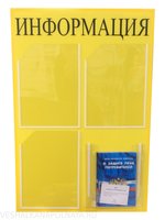 Информационный стенд 4 кармана желтый (3 плоских А4 + 1 глубокий А5)