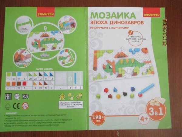 Мозаика BONDIBON Эпоха динозавров 198 шт.