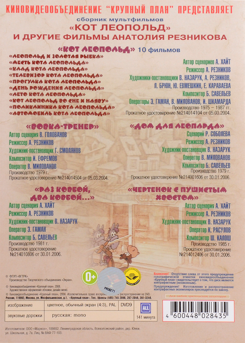 Кот Леопольд и другие фильмы Резникова (DVD, сборник мультфильмов)
