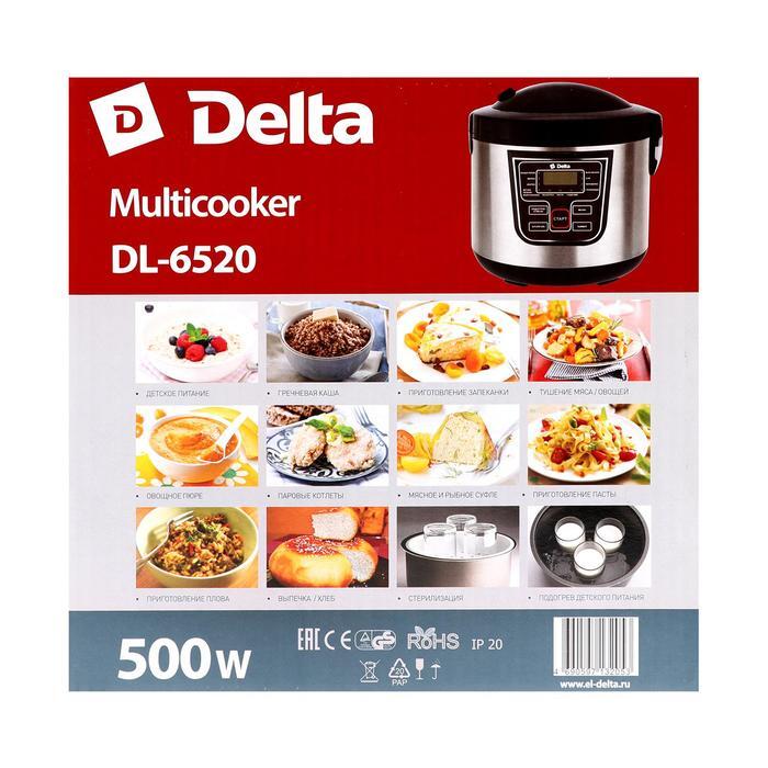 Мультиварка DELTA DL-6520, 500 Вт, 3 л, 11 программ, серебристая