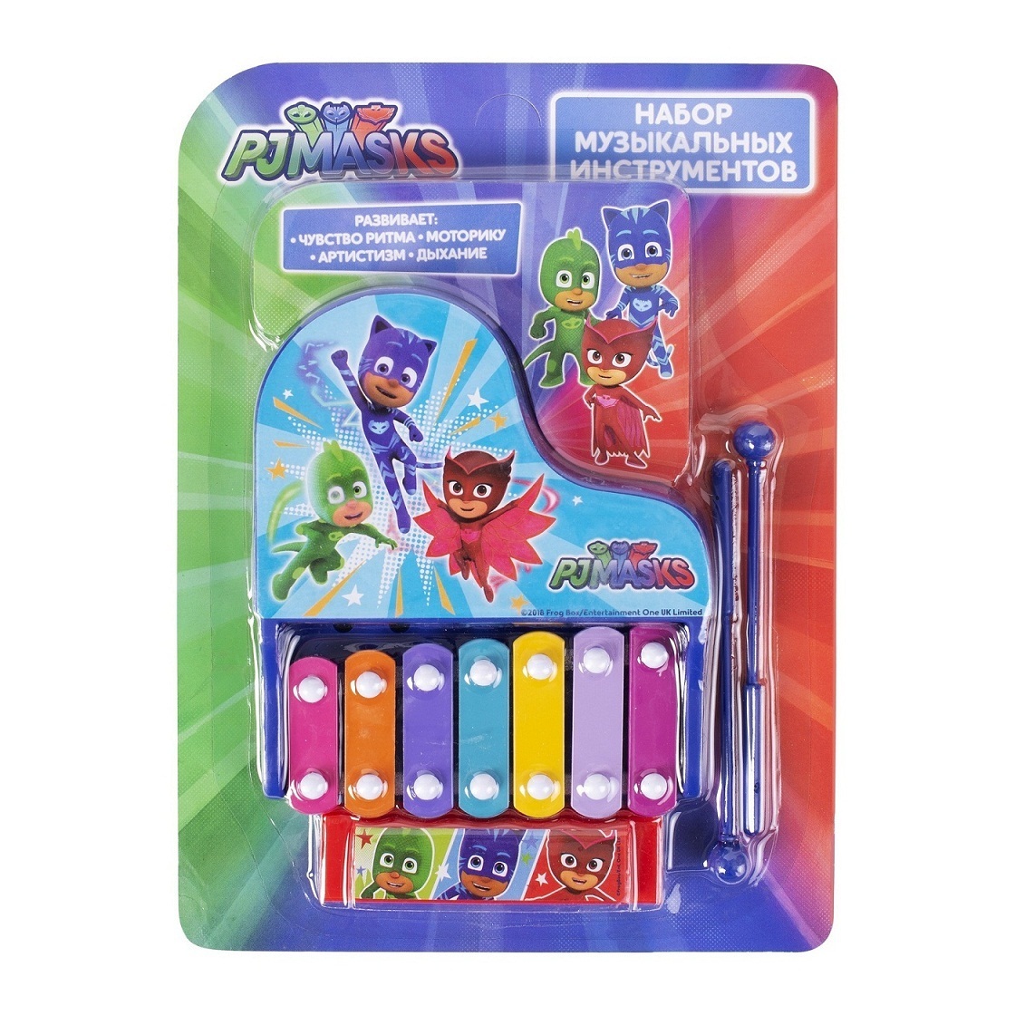 Набор игрушечных музыкальных инструментов: металлофон, губная гармошка, 2 палочки