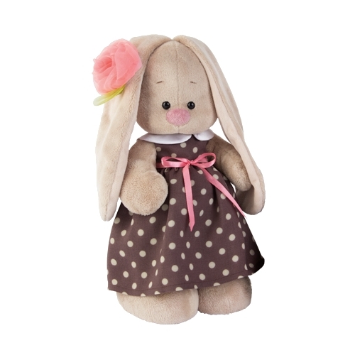 Мягкая игрушка Зайка Ми в кофейном платье и цветком на ушке 25 см