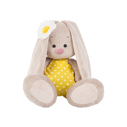 Мягкая игрушка Зайка Ми в жёлтом комбинезоне и с ромашкой 18 см