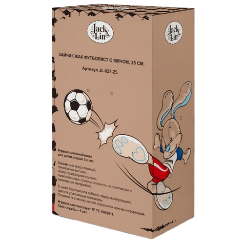 Мягкая игрушка Maxitoys Зайчик Жак Футболист с мячом 25 см