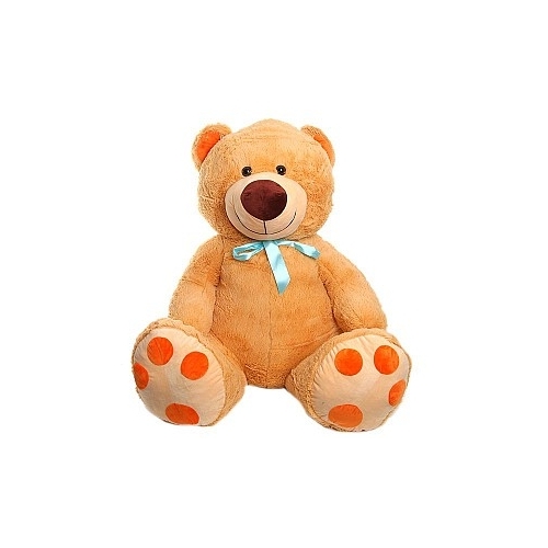 Мягкая игрушка СмолТойс Медведь бежевый с голубым бантиком 108 см