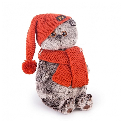 Мягкая игрушка Basik&Co Кот Басик в вязаной шапке и шарфе 19 см