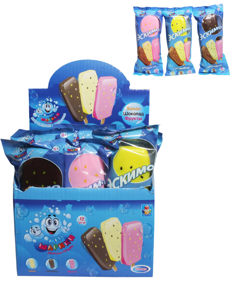 Мы-шарики.Т58683 Мыльные пузыри "Эскимо на палочке" (в цвет.обертке, шоколад, банан, фрукты)