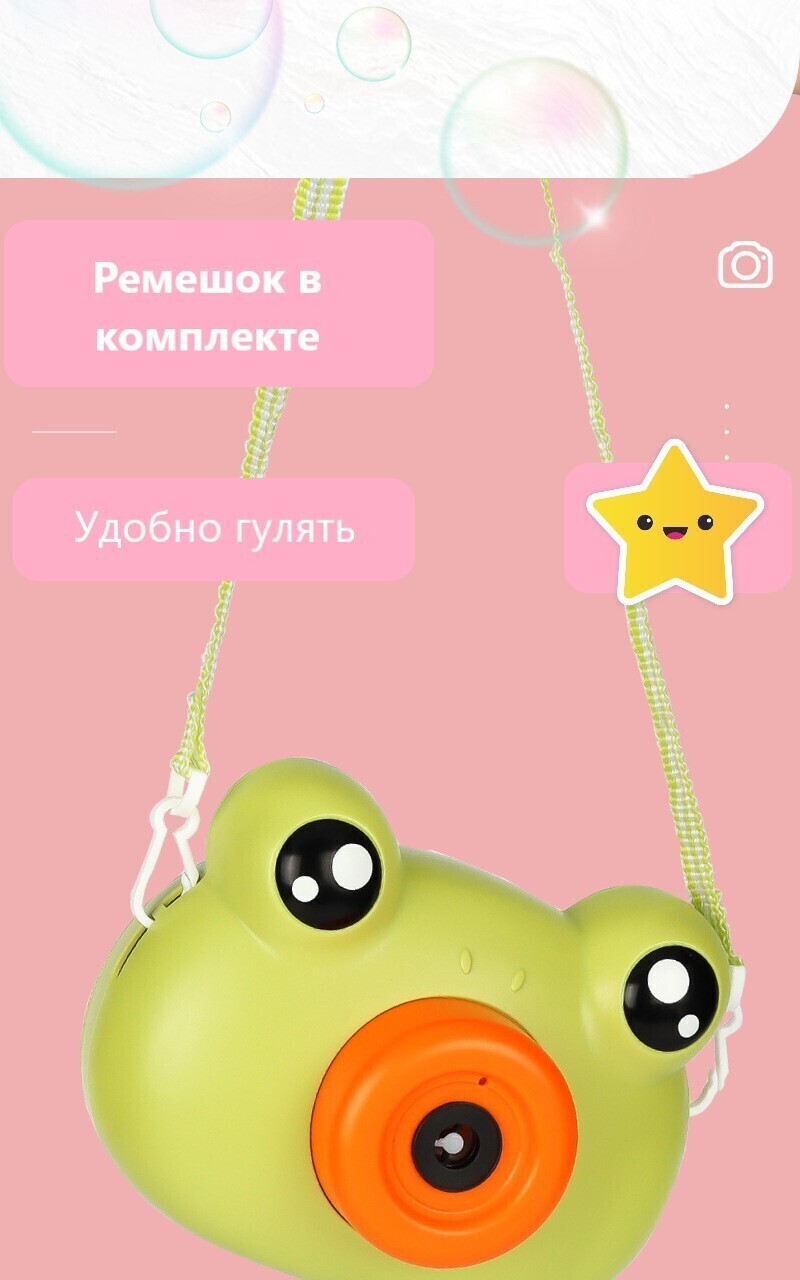 Мыльные пузыри, фотоаппарат, лягушка на батарейках со светом и звуком