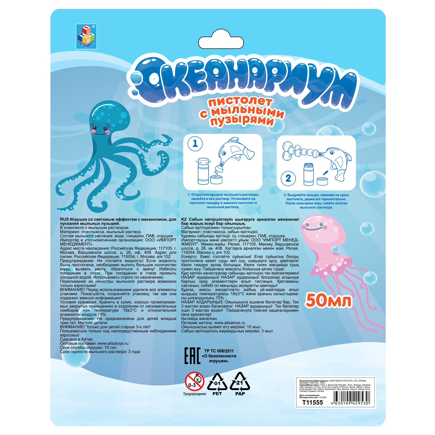 Мыльные пузыри, 1TOY, "Океанариум" пистолет со световым эффектом