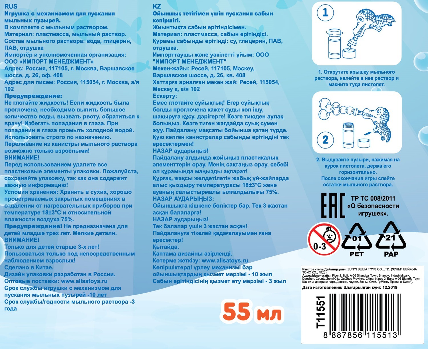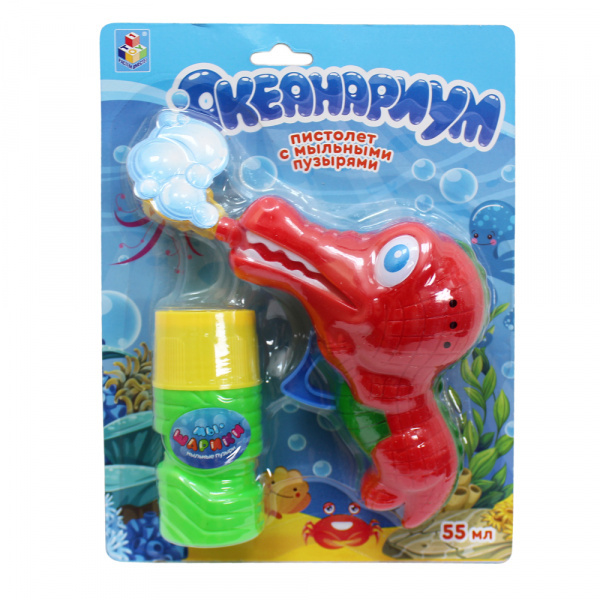Набор для пускания мыльных пузырей, 1TOY, "Океанариум" с пистолетом в виде крокодила (55 мл.)