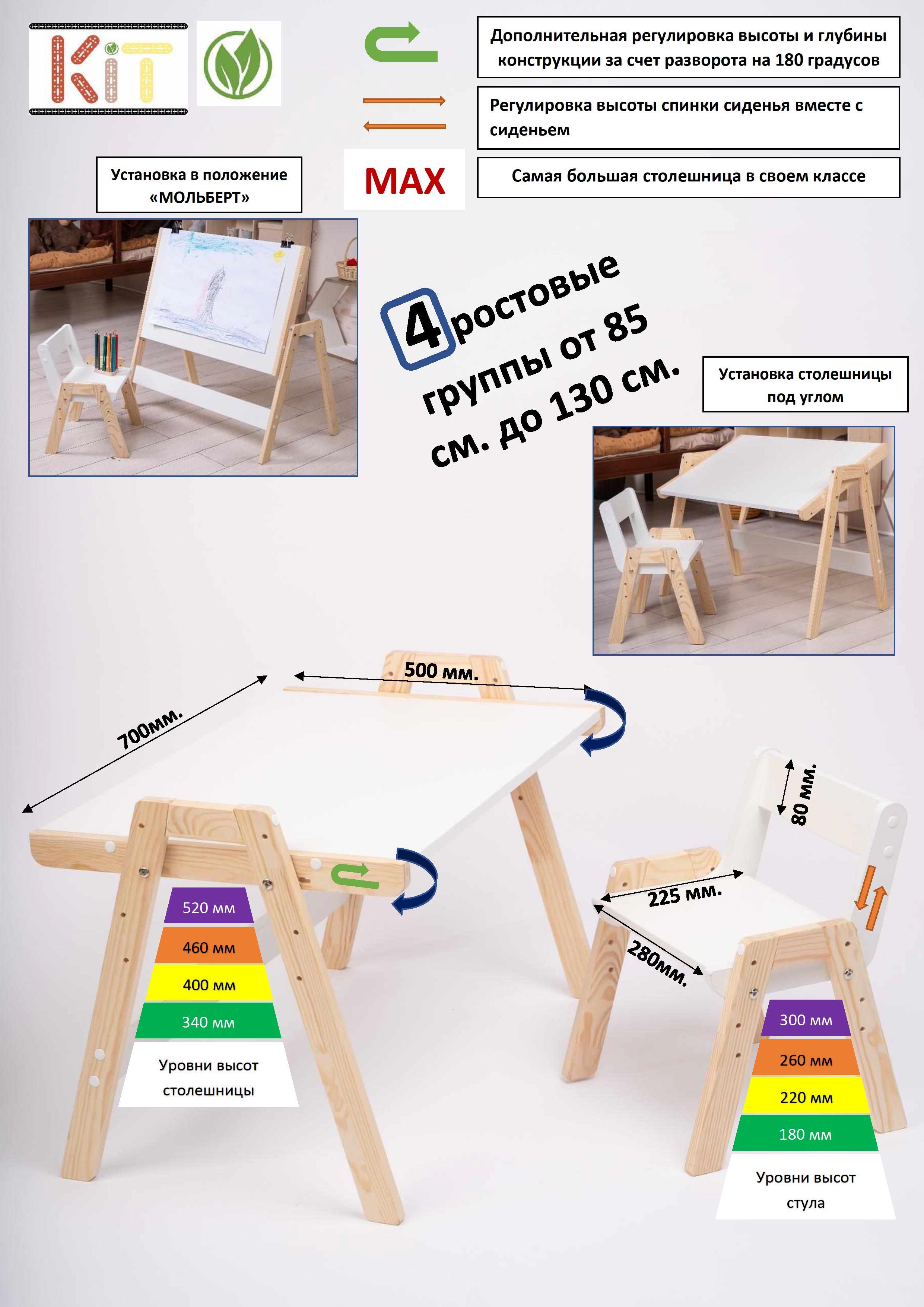 Комплект детской мебели стол со стульчиком деревянный от 2 до 5 лет