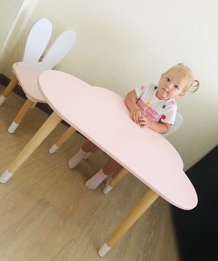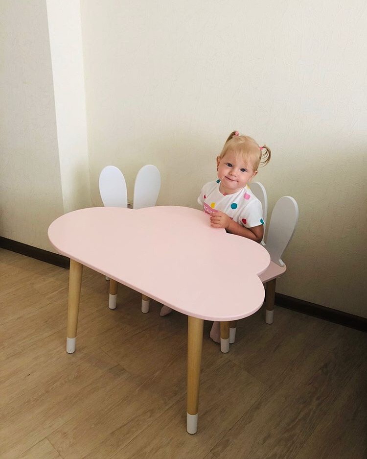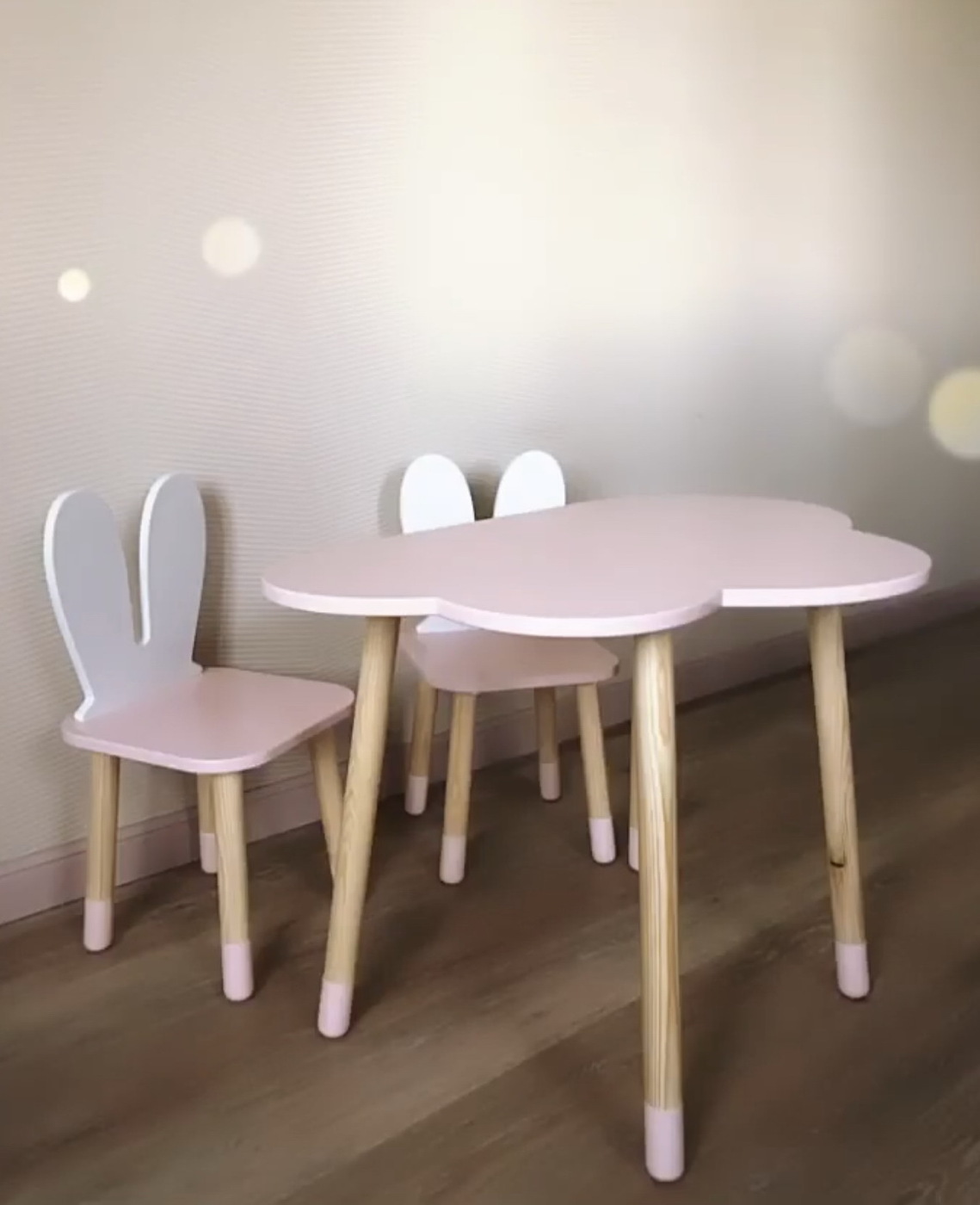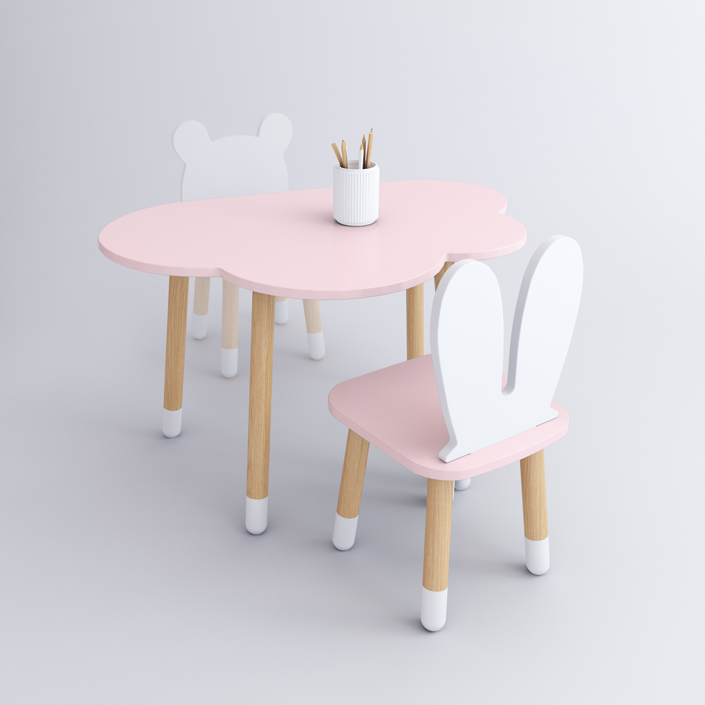 Комплект детской мебели DIMDOMkids, стол "Облако" розовый + стул "Зайка" розовый