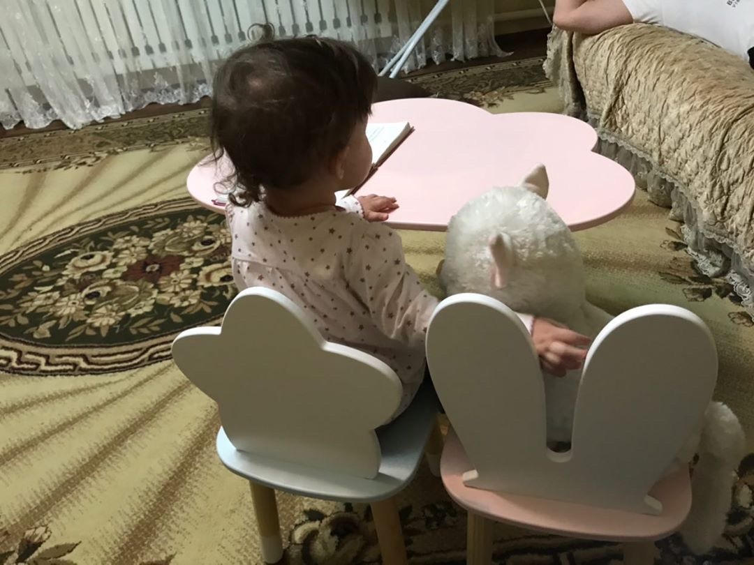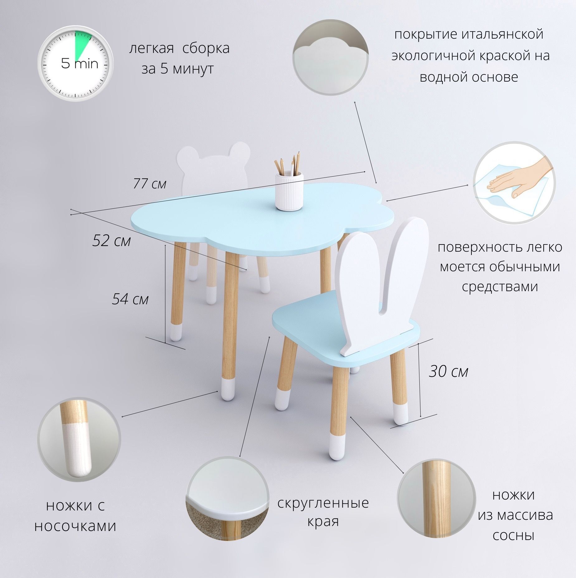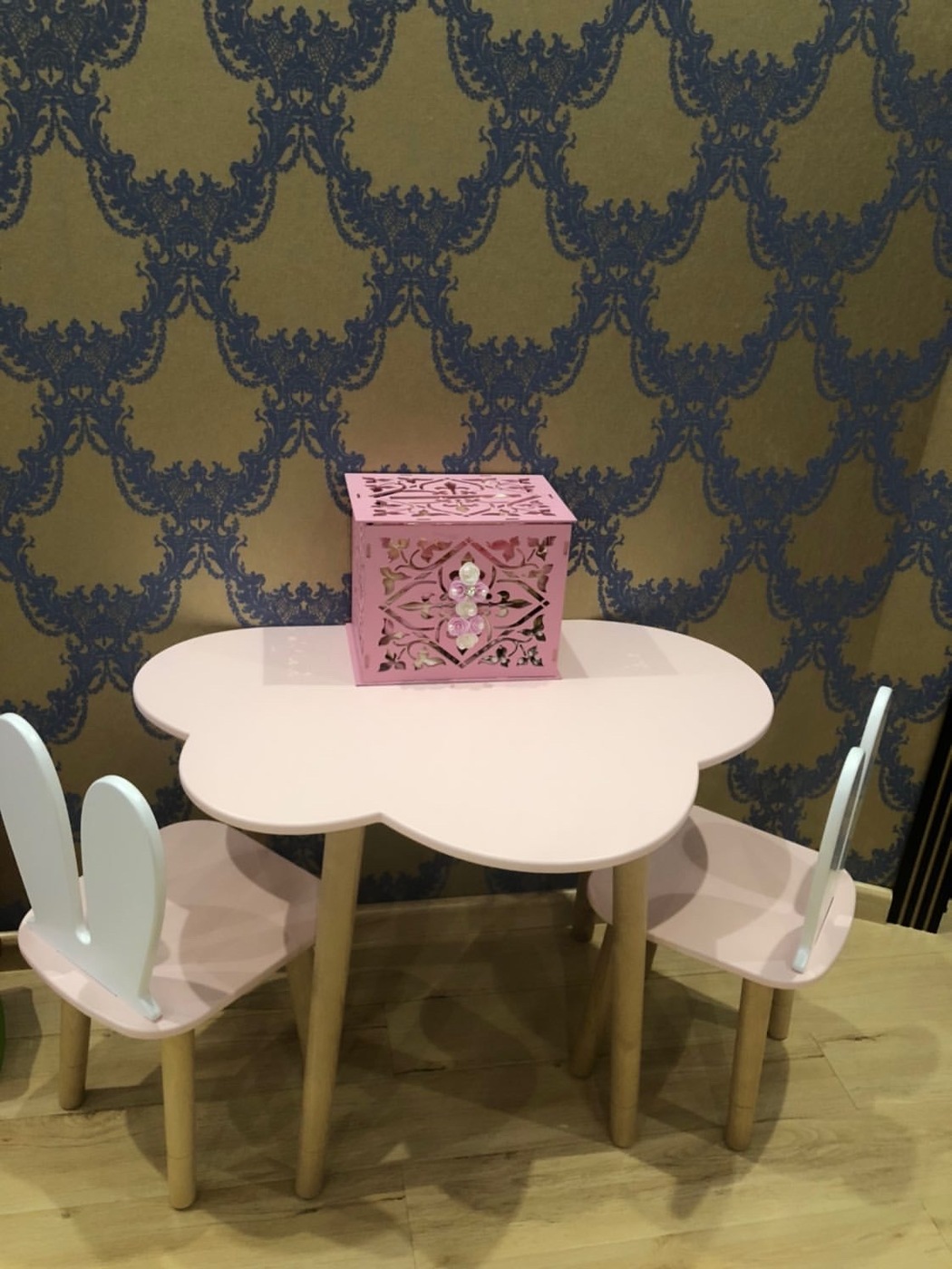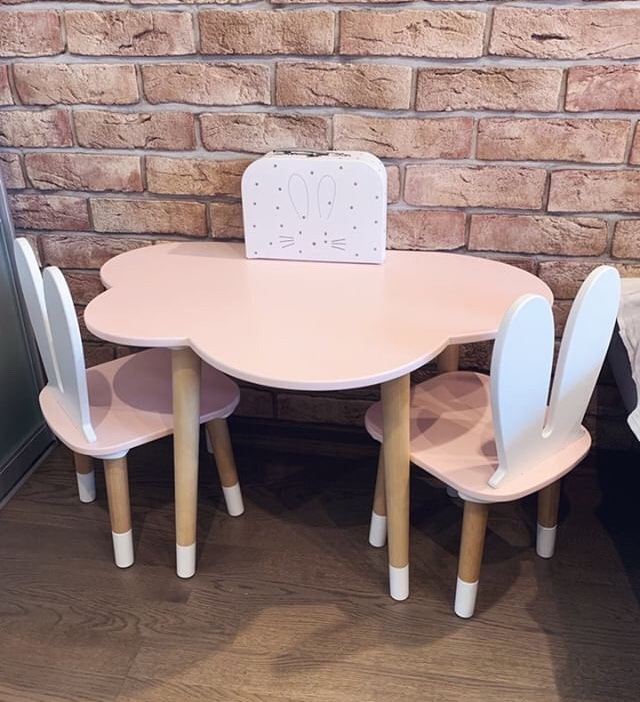 Комплект детской мебели DIMDOMkids, стол "Облако" розовый + стул "Зайка" розовый