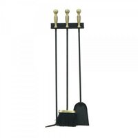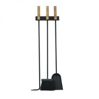 Каминный набор Е10001WВ (70х20, 3 предмета, чёрный с деревянной ручкой)