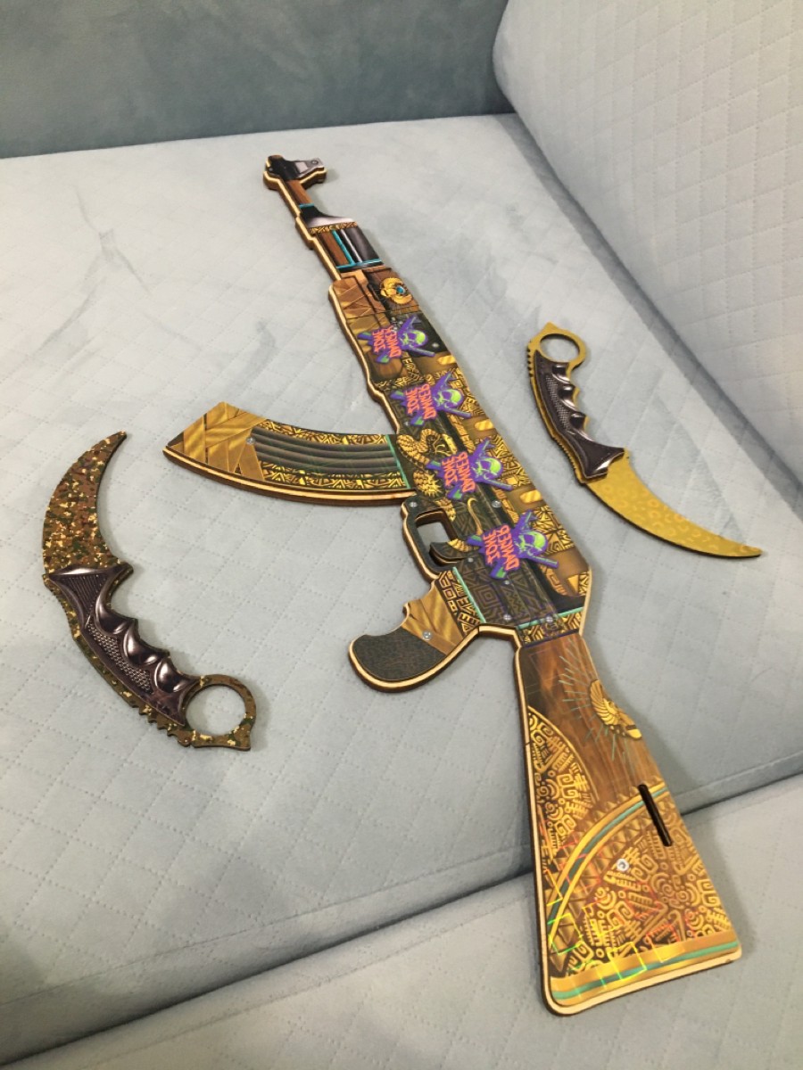 Игрушечное оружие Автомат АК 47, нож керамбит 2 шт (Деревянный)