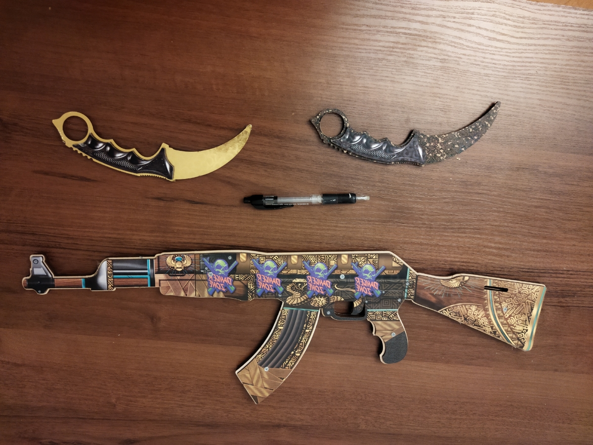 Игрушечное оружие Автомат АК 47, нож керамбит (Деревянный)