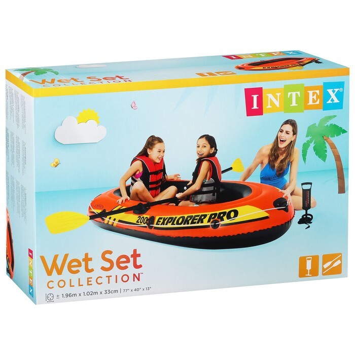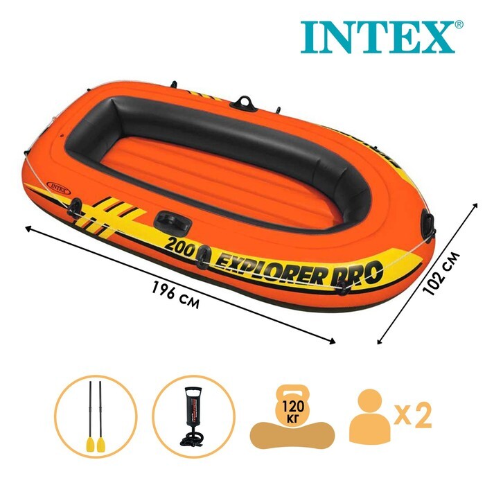 Лодка Pro 200, 2 местая, 196 х 102 х 33 см, вёсла, насос, от 6 лет, до 120 кг, 58357NP