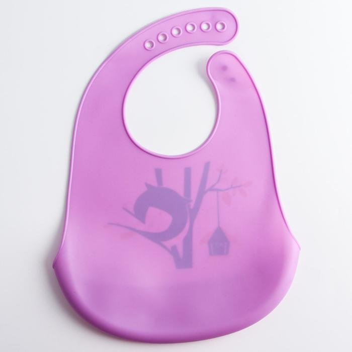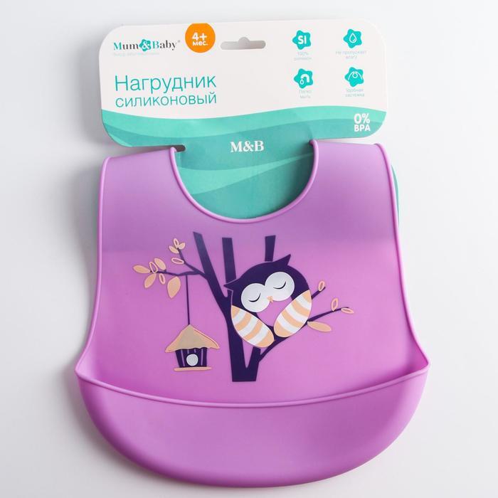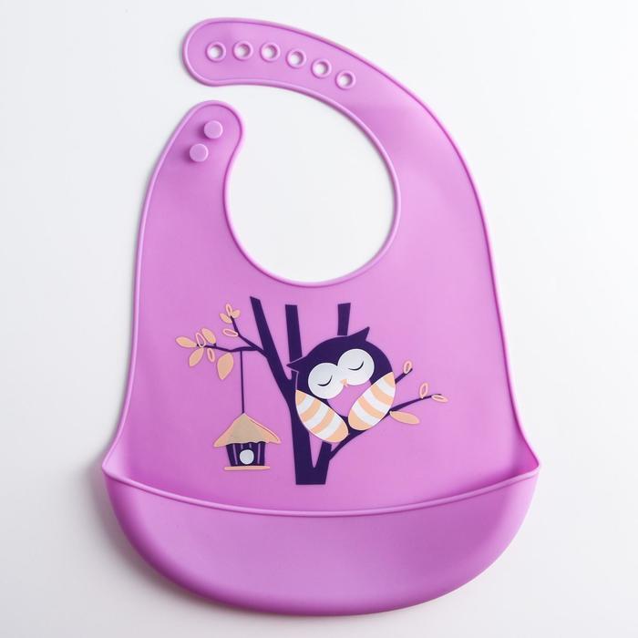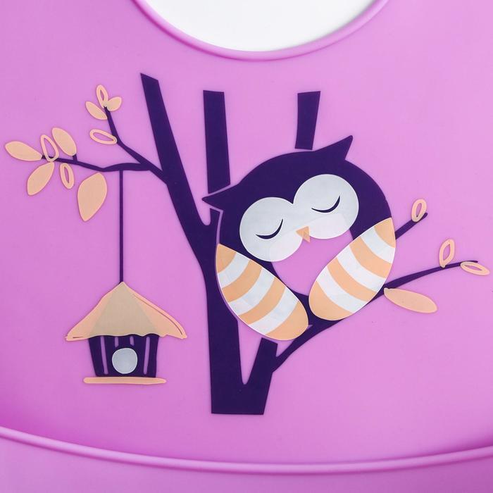 Нагрудник силиконовый, с карманом "Сова", цвет фиолетовый