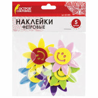 Наклейки из фетра "Солнышки", 5 шт., ассорти, остров сокровищ