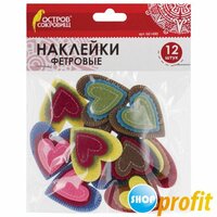 Наклейки декоративные из фетра Остров сокровищ "Сердечки", 12шт., набор (661490)
