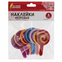 Наклейки из фетра "Леденцы", 6 шт., ассорти, остров сокровищ, 661496